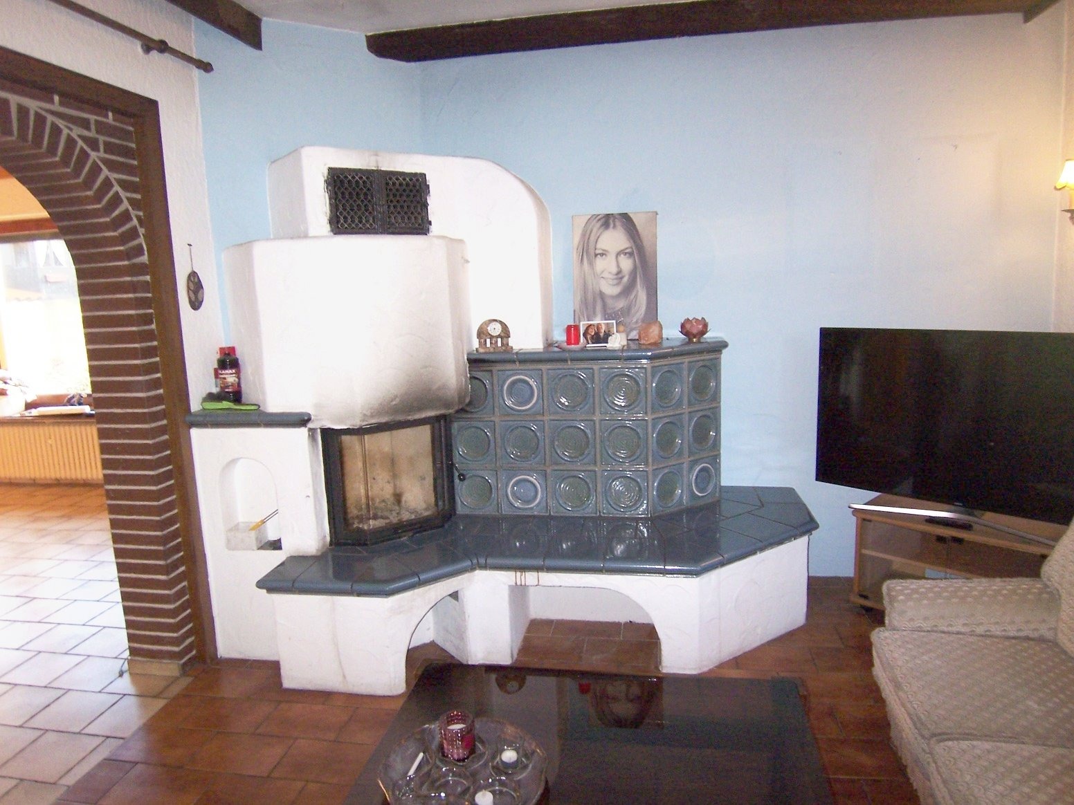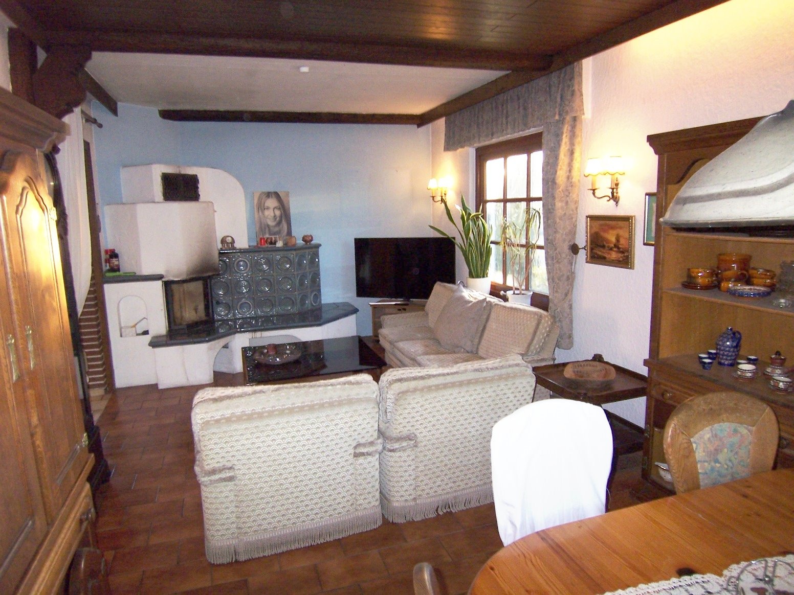 2. Wohnzimmer mit Kaminofen und Essbereich