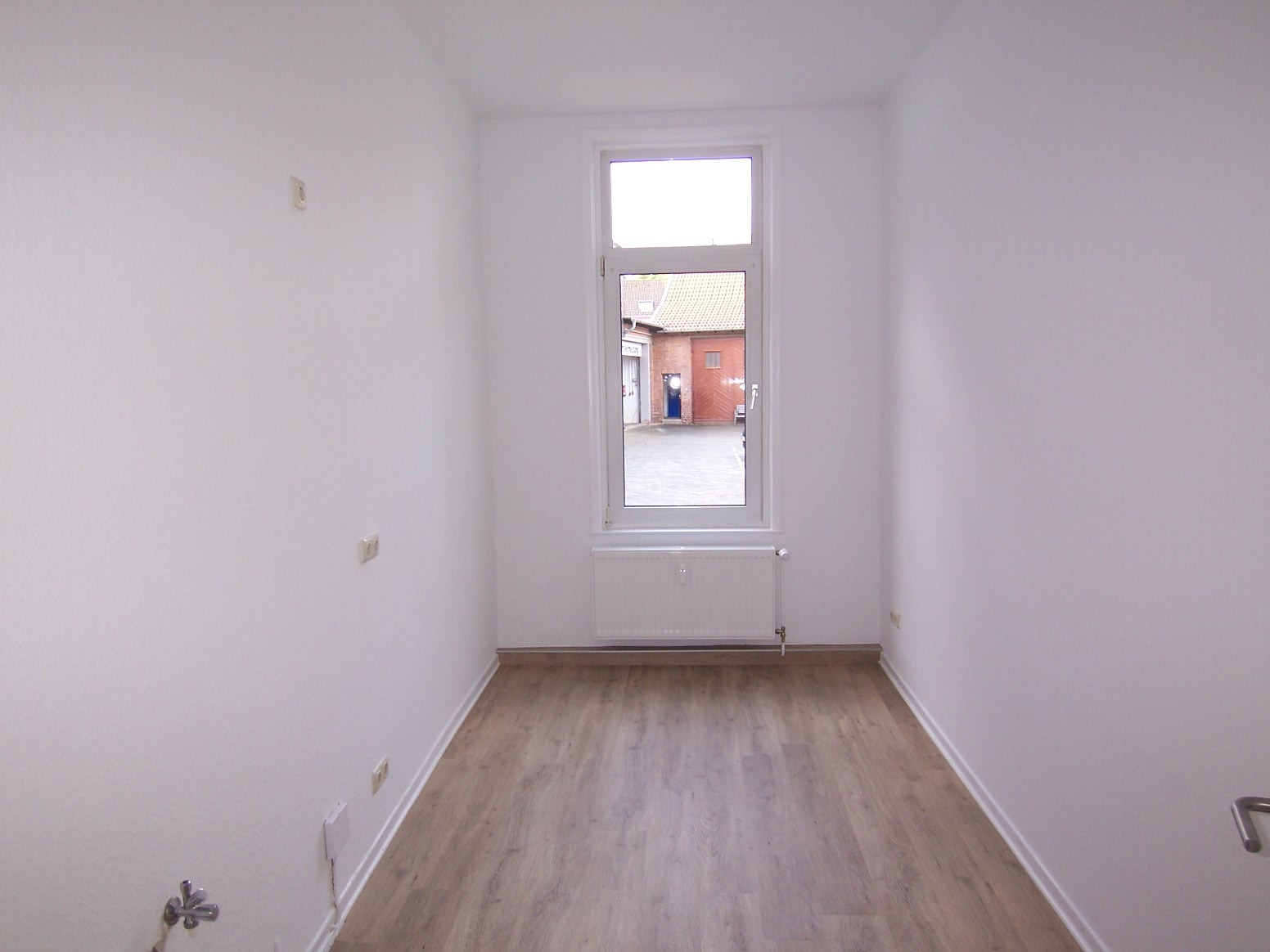 Schlafzimmer, Kinderzimmer / Büro, Küche, Bad mit Dusche Fenster und Anschlussmöglichkeit für eine Waschmaschine.