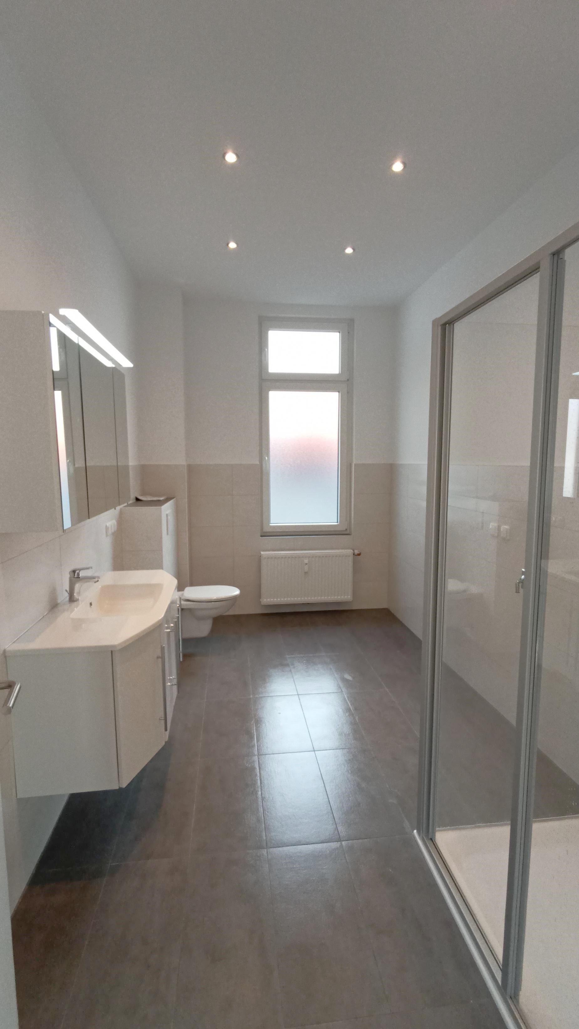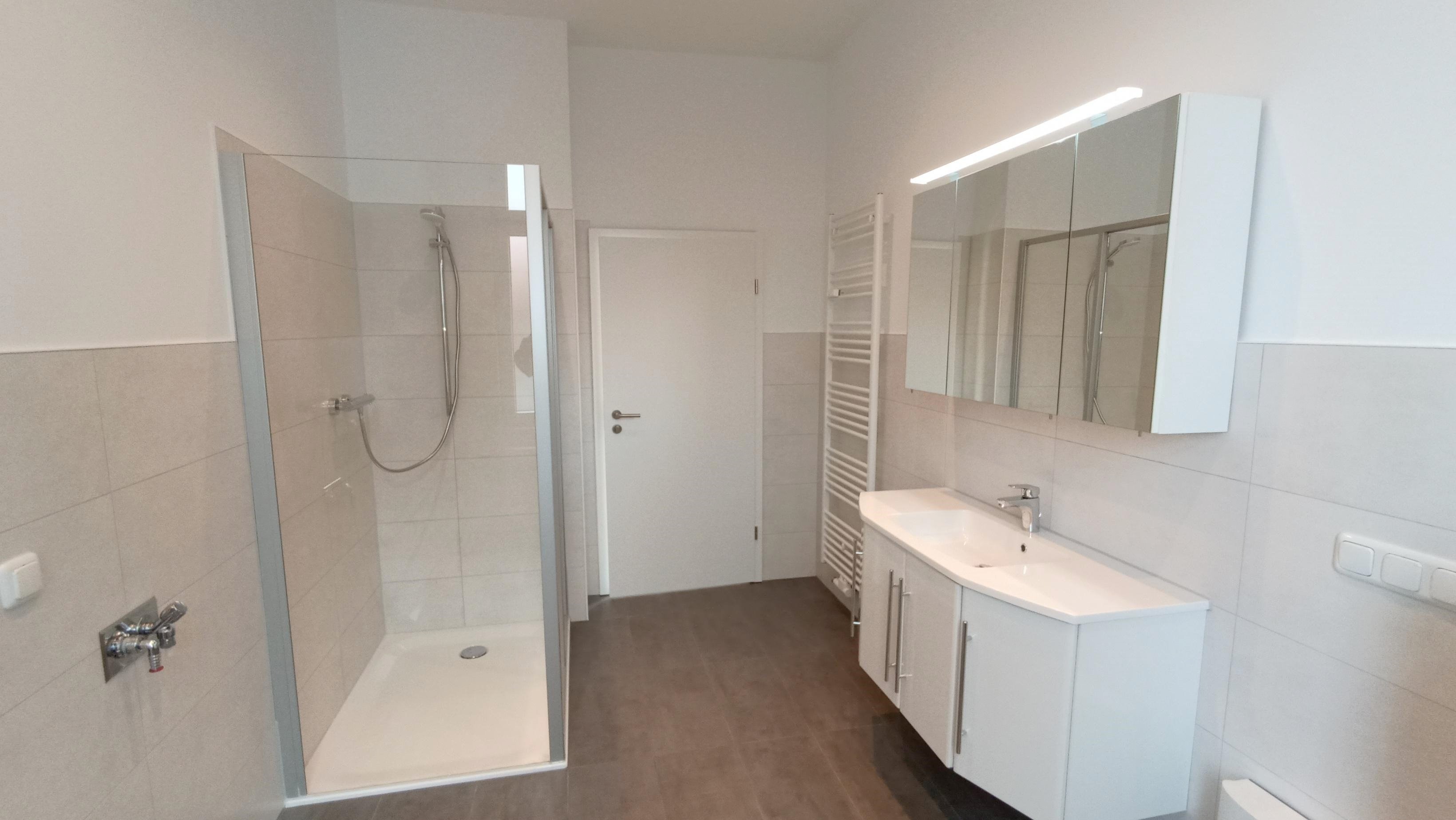 - Ausstattung des Bades Dusche Fenster