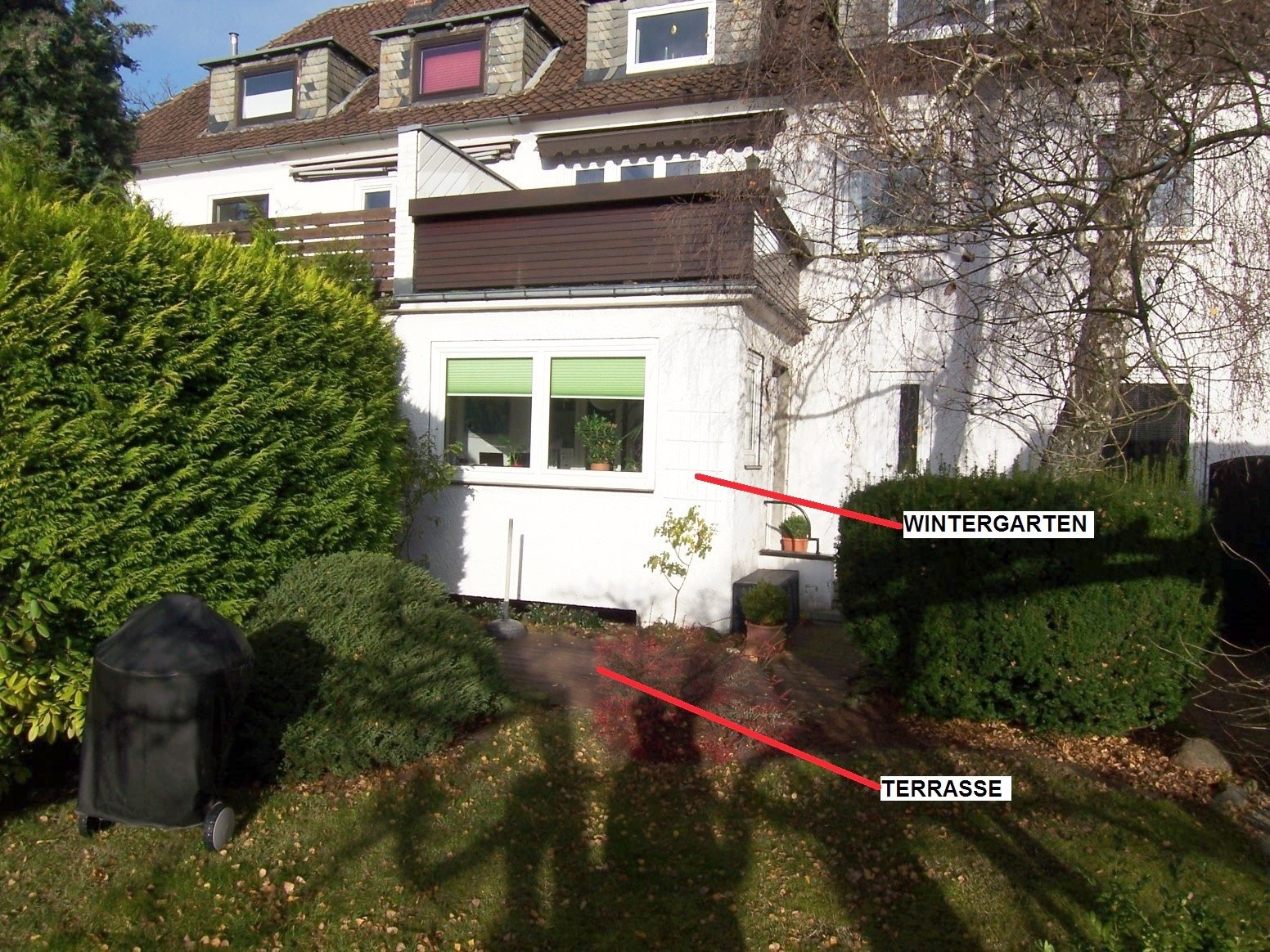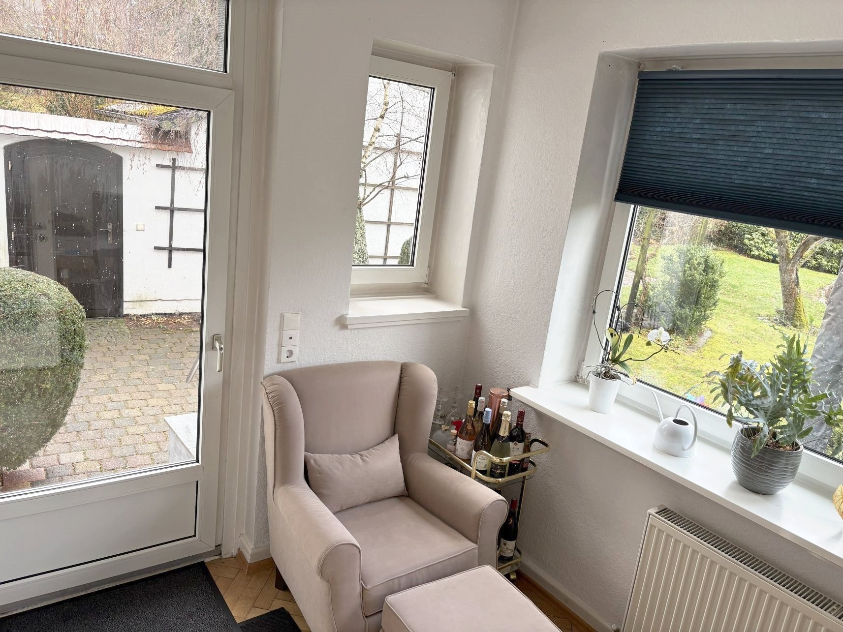 Vom Wintergarten besteht ein Zugang zur Süd-Terrasse und zum Garten.